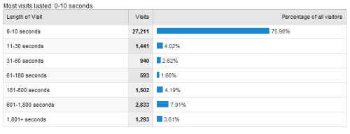 This new data made the "5 minute" average look really good! Over 75% of my visitors were spending